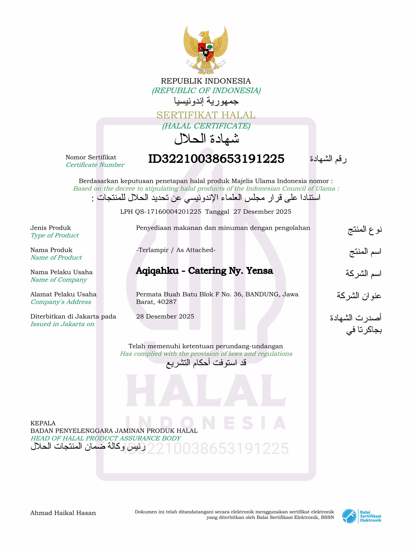 Dengan pelayanan profesional, tim Ny. Yensa menghadirkan pengalaman sajian yang berkelas, higienis, dan berkesan.